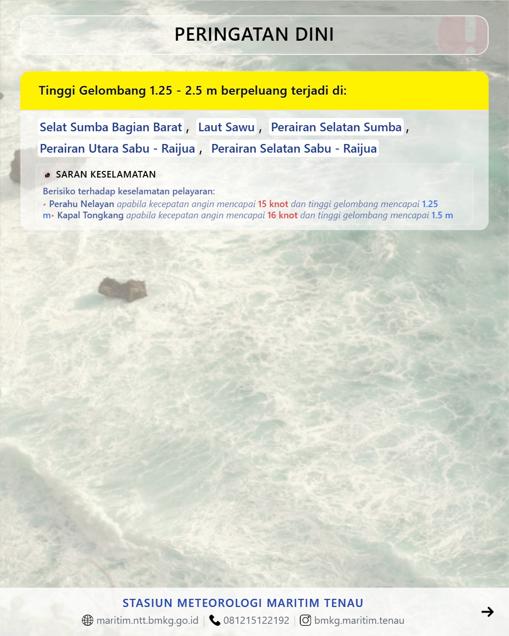 Informasi Peringatan Gelombang Tinggi Perairan NUSA TENGGARA TIMUR, Cuaca Buruk, dan Gempabumi